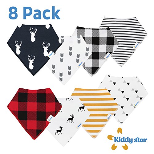 -. Title : Bandana Baby Bibs for Boys and Girls by KiddyStar, Unisex 8-Pack 100% Organic Cotton Bib Set (Plaid), Cute Newborn and Cool Baby Shower Gift for Teething and Drooling, Soft and Absorbent