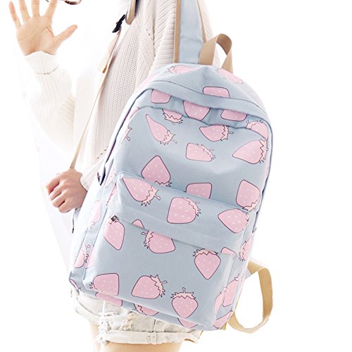 -. Title : 14 inch Girls Laptop Backpack Strawberry Pattern Canvas Travel Backpack School Bag