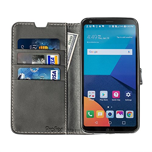 LG G6 Hulle, Profer [Premium Leder Serie] Schutzhulle PU Leder Flip Tasche Case mit Integrierten Kartensteckplatzen und Stander fur LG G6