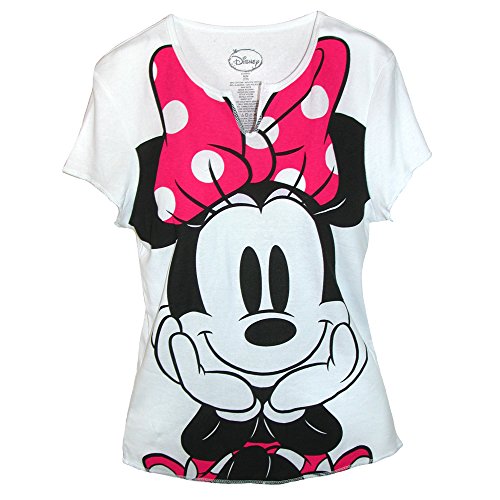 This adorable Minnie Mouse tee will keep you cool, comfortable and looking fabulous. The bold Minnie Mouse with pink polka dot bow is featured on this super soft cotton blend knit tee. The collar features a crew neck line features a cut out v for comfort and mobility.Feature
