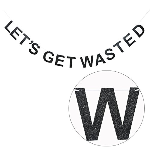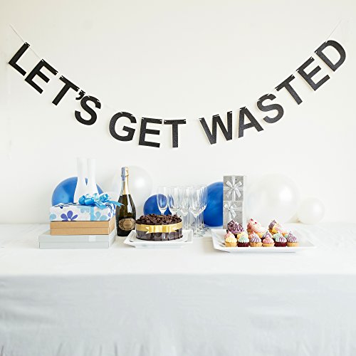 Funny ‘LET'S GET WASTED’ Party Banner in Black Glitter Card Perfect for New Year Party, NYE, Ch...