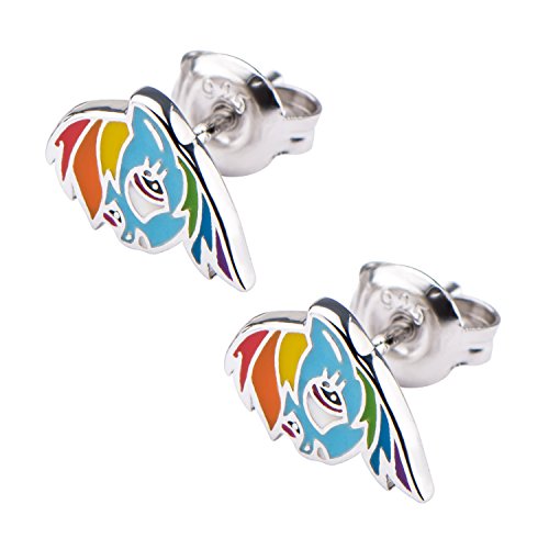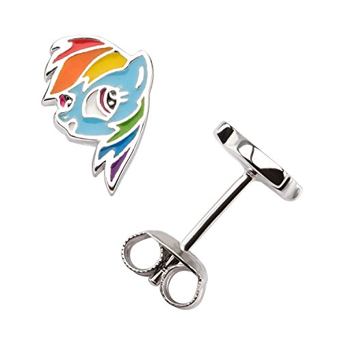 Sterling Silver stud earrings of Rainbow Dash's head and mane with multi-tone epoxy filling