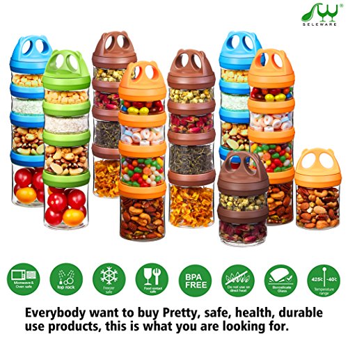 Twist lock system and stackable storage jars which is easy to store for Nut, Candy, Milk powder, Jam, Pill, Small item etc when outdoor activities and travel.
