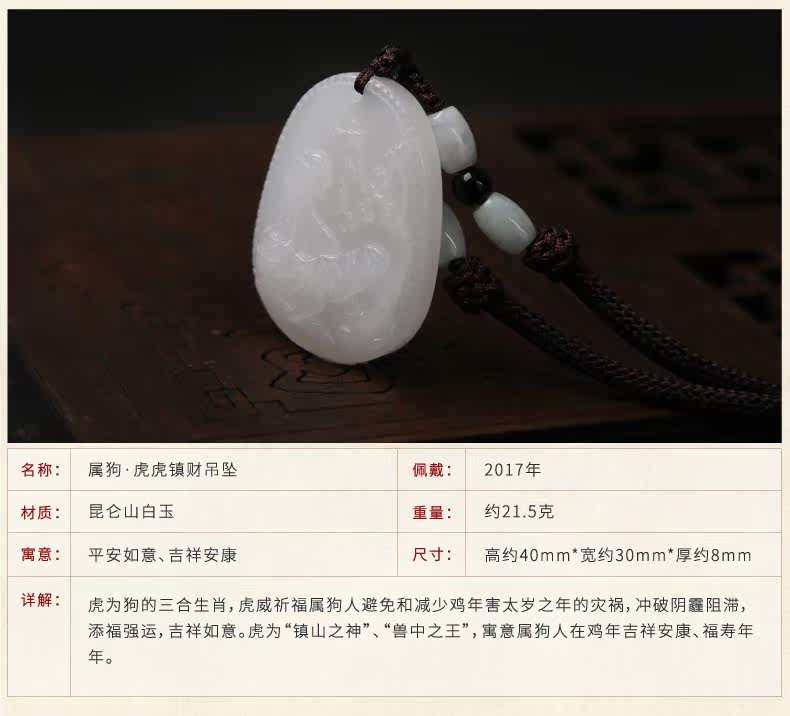 开光属狗吉祥物虎虎镇财玉吊坠属狗鸡年虎虎镇财摆