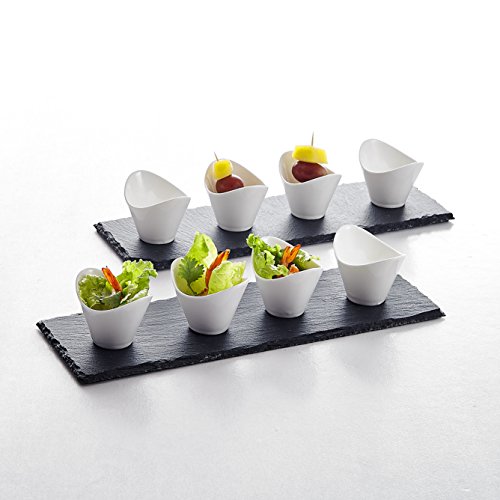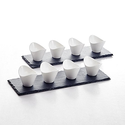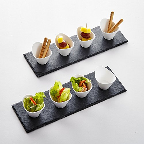 PACKAGE INCLUDING - 2-Piece 12" Natural Slate Stone, 8-Piece 2.6" Snack Dishes. Perfect service for more than one person.