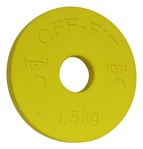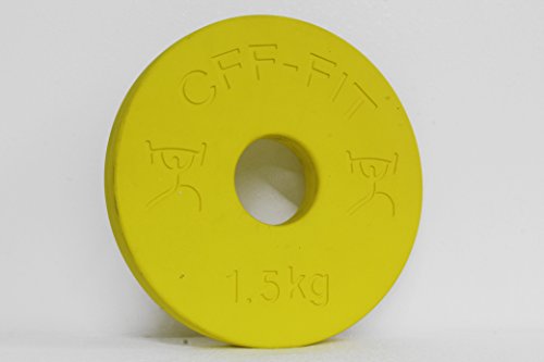 Studio : Christian's Fitness Factory Publisher : Christian's Fitness Factory Binding : Sports Product Description CFF Competition Rubber Fractional Weight Plates- 1.5 kg (pair) Stuck in a rut? Many times we plateau at a certain weight and for everyone it is different, whether it's a squat, Olympic lifts, or the dead-lift. With micro-loading you can overcome these plateaus. Fractional weight plates help you raise the weight in increments as low 1/4 lb or .25 kg. You do not have to just add 2.5 or 5 lbs every time. Micro loading is an excellent way to push yourself, by making every set count. Lets face it, time matters and we are a now kind of world where we do not have a lot time, so we want to make sure every moment, rep, set counts. CFF Fractional weight plates are manufactured to IWF Specifications, hold a extremely tight tolerance, and use only the highest quality materials with no impurities. We provide our customers with a set of extremely accurate, high quality plates that will last a lifetime at an affordable price. Product Specs: 0.25KG plates are 100% virgin rubber, all other KG plates are 100% virgin rubber over steel inserts. Accurate /- 2 grams of specified weight FIt on Olympic Bars: 50.5 mm inside diameter manufactured to IWF Specifications Available in 0.25 kg, 0.5 kg, 1.0 kg, 1.5 kg, 2 kg, 2.5 kg plates Color coded to IWF Spec for easy selection Guaranteed to last! Color: Yellow **Our Fractional Weight Plates are also available in pounds** 0