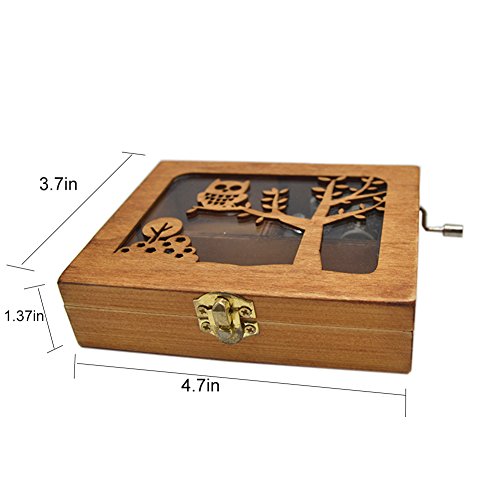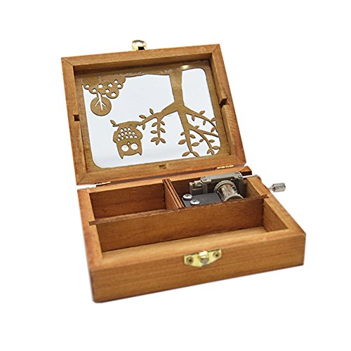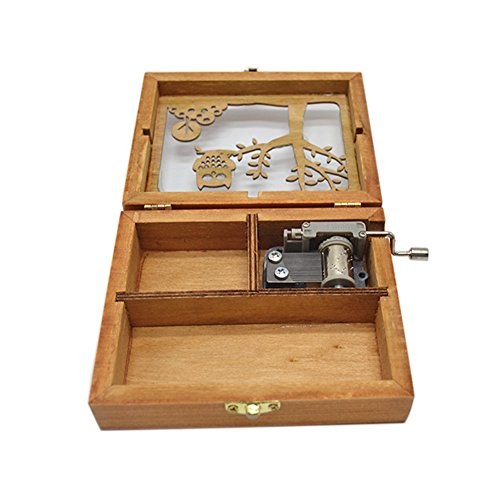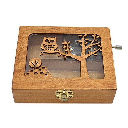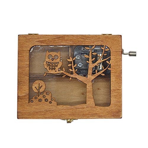 Anlydia Vintage Wooden Animal Pattern Hand Cranked Jewelry Music Box Trinket Box (Owl)