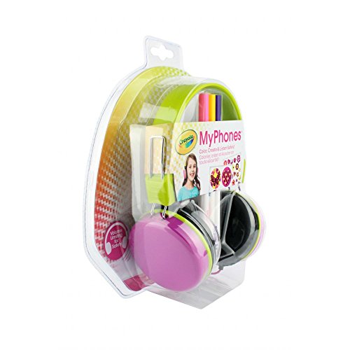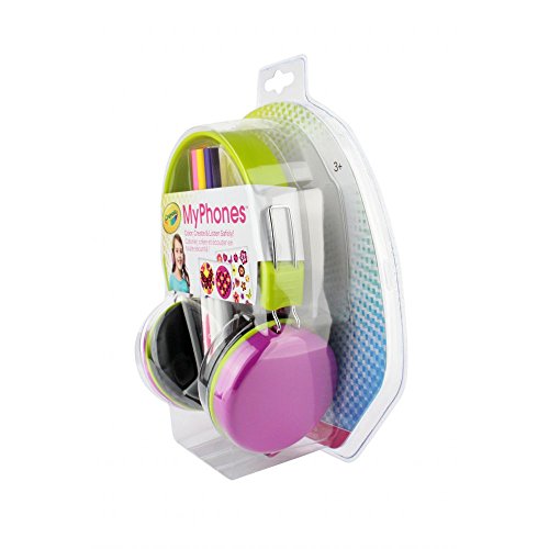 -. Feature : Durable headphones for kids / Create your own stickers with 3 included Crayola markers / Decorate with 40 included stickers / Listen at a safer volume; MyPhones' built-in volume limiter circuit caps listening levels at 85 decibels / Compatible with: Samsung Galaxy S3, Samsung Galaxy S4