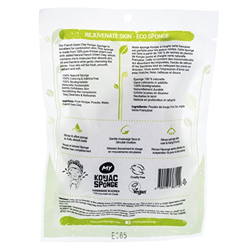 -. Title : My Konjac Sponge All Natural Fiber French Green Clay Facial Sponge