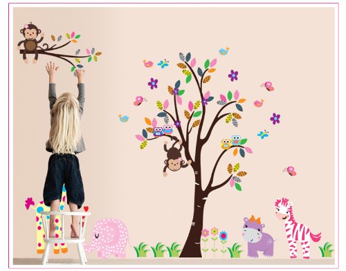 Cartoon Cute Monkeys Big Trees Removable Wall Stickers Home Decor Decals For Children's Room Nursery, Set Of 2 Sheets (lion-tree)