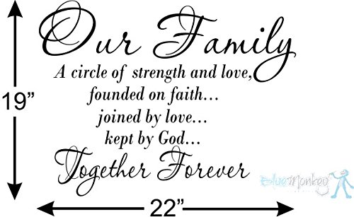 -. Binding : Tools & Home Improvement -. Brand : FOAL -. Label : FOAL -. Manufacturer : FOAL -. Model : Teju-Parent -. ProductGroup : Home Improvement -. ProductTypeName : BUILDING_MATERIAL -. Publisher : FOAL -. Studio : FOAL -. Title : Our Family a Circle of Strength and Love Wall Vinyl Sticker Decal Home Decor Lettering By Blue Monkey Graphics