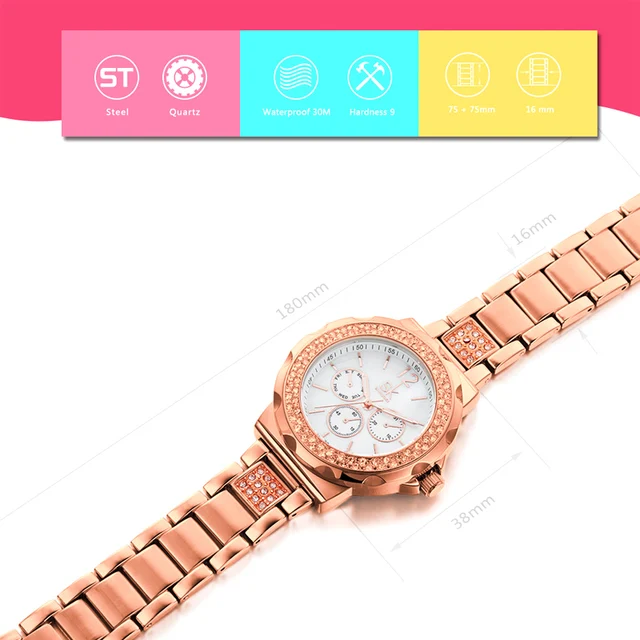 | [해외] 2017 새로운 SK Relogio Feminino 브랜드 고급 스테인레스 스틸 밴드 여성 팔찌 쿼츠 시계 시계 손목 시계 # K0032 |