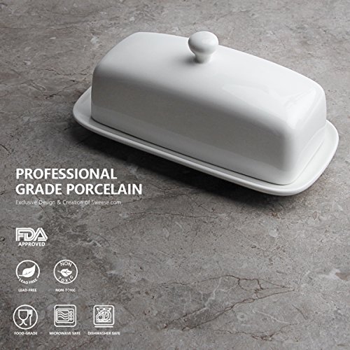 Why Choose Sweese Butter Dish? Advantage Of Sweese Butter Dish - Helps keep your kitchen looking tidy and organized, keeps the pet out of the butter. A Little Knob - Has a little knob on top making it easier to take off the lid, prevents from slipping out of your hand should you get butter on it. A Good Raised Border - There is also a small ridge on the dish so that the butter stays in the middle of the dish and there is less of a chance of dropping the lid on to the edge of the butter. Perfect Size - Big enough to allow the butter breathing room. You can fit one stick of butter in this dish easily without having to worry about butter touching the top or sides of the lid. Best Gift Option They are packaged in a well wrapped box, a lovely, graceful shape, no blemishes, the style is clean and simple, fit nicely in the dishwasher. A perfect gift for your friends and family on Housewarming, Wedding party, Mothers' Day, Fathers' Day, Christmas and New Year's Day. YOUR CONFIDENCE ASSURED - PEACE OF MIND GUARANTEE ? 30 Day No-Chip Warranty ? 100% Satisfaction Guarantee All our porcelain products come with a standard manufacturer No-Chip Warranty for a period of 30 days from the date of purchase. Sweese will replace or provide equivalent substitutes one-for-one at no charge for any piece found to be defective. We want to provide a superior kitchen experience with our products you love. As such, if you aren't satisfied with your purchase, contact us within 30 days, and we'll send you a free replacement or refund. You're protected by a no-hassle and peace of mind guarantee! 0 |