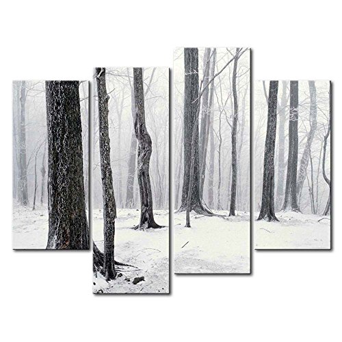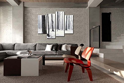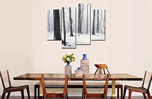 -. Title : So Crazy Art® Black & White 4 Panel Wall Art Painting Winter In The Forest Snow Pictures P.R.Ints On Canvas Landscape The Picture Decor Oil For Home Modern Decoration P.R.Int For Bathroom