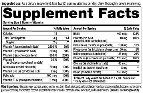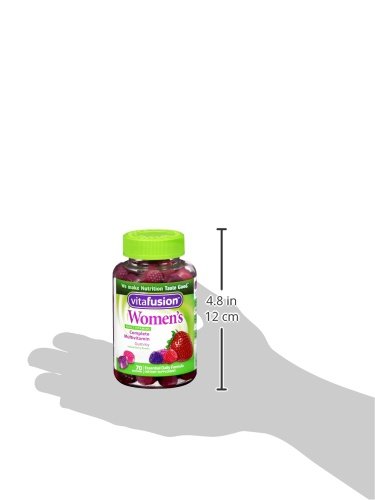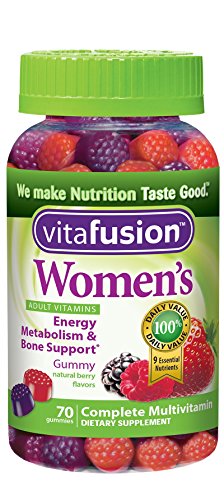 -. Binding : Health and Beauty -. Brand : Vitafusion -. EAN : 0027917022680 -. Feature : Women's multi-vitamin and mineral formula in naturallly flavored gummies with up to 35 servings per bottle / Tasty and easy to take alternative to pills / Just two per day provides multivitamins and minerals women may need / Contains no gluten (wheat), milk, eggs, peanuts, or soy / Delicious natural flavors -. IsAdultProduct : 0 -. Label : Vitafusion -. Manufacturer : Vitafusion -. MPN : KR-027917022680 -. NumberOfItems : 1 -. PackageQuantity : 1 -. PartNumber : KR-027917022680 -. ProductGroup : Health and Beauty -. ProductTypeName : HEALTH_PERSONAL_CARE -. PublicationDate : 2012-04-26 -. Publisher : Vitafusion -. ReleaseDate : 2015-05-28 -. Studio : Vitafusion -. Title : Vitafusion Women's Gummy Vitamins, 70 Count -. UPC : 027917022680 Made with delicious natural colors and flavors, easy-to-take Vitafusion Women's daily multivitamins are the nutritious alternative to hard-to-swallow pills. Easy to chew flavorful gummies provide an enjoyable way to get the multivitamins and minerals women may need every day. Just 2 gummies per day help support healthy metabolism and women's bone health. Vitafusion Women's Daily Multivitamins contain 100 mg of collagen. Made with natural colors and flavors, they contain no gluten (wheat), milk, peanuts, tree nuts or soy. Vitafusion Women's gummy vitamins are made in the USA and lab tested to ensure quality and potency. (This statement has not been evaluated by the Food and Drug Administration. The product is not intended to diagnose, treat, cure or prevent any disease.)