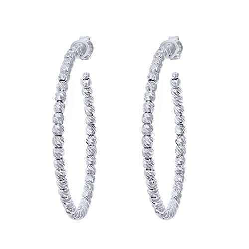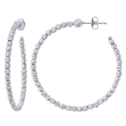 Hoop earrings are timeless classics that will never go out of style. This classic version is made from sterling silver diamond cut beads, which set these hoops apart from all others and will add an understated expression to your outfit. These large hoop earrings measures 1.88" in diameter.