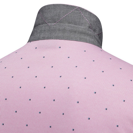 - 카라와 플라켓 이면 배색으로 포인트를 줌.