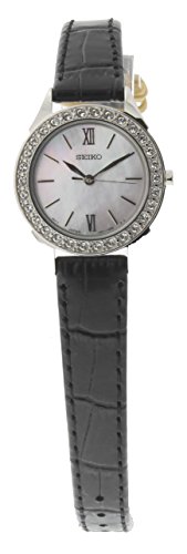 Seiko Quartz Swarovski Elements Mother of Pearl Dial Black Leather Band SXGP27P2