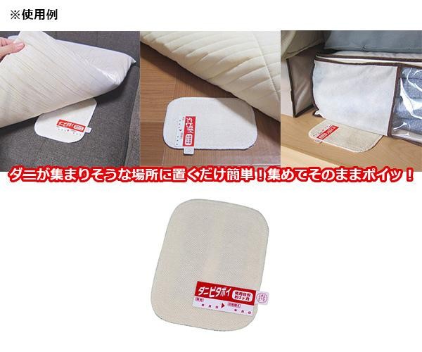 置くだけのダニ捕りシートです。殺虫剤を使用していないので、お子様やペットなどのいるご家庭でも安心してご使用いただけます。期限を過ぎたら、家庭ごみとして廃棄できます。 |