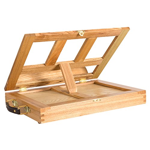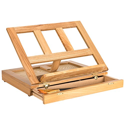 HollyHOME Adjustable Wood Desk Table Box Painting Easel with Storage Drawer Artists Book Stand with drawer Natural