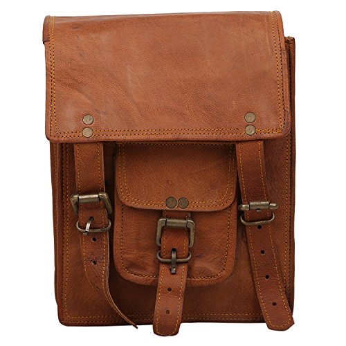 -. Binding : Electronics -. Brand : tablet bag -. Color : brown -. EAN : 0655043604038 -. Feature : Pure Goat Leather / Dimensions (approx.) : (9 x 2.5 x 11) inches / Handmade from quality goat leather, naturally tanned (not dyed) that softens and darkens with regular use. / Deep multi-compartment canvas interior. / Bag darkens with use and gets softer leaving it more attractive. -. Label : tablet bag -. Manufacturer : tablet bag -. ProductGroup : PC Accessory -. ProductTypeName : CARRYING_CASE_OR_BAG -. Publisher : tablet bag -. Studio : tablet bag -. Title : Leather Messenger Satchel Laptop Bag for Men's and Women's Leather Satchel Laptop Messenger Unisex Ipad Mini Laptop Bag -. UPC : 655043604038