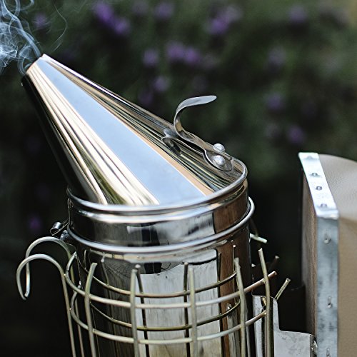 High-quality stainless-steel design calms bees with harmless smoke and prevents stinging. Includes hook for easy hanging, protective heat guard for safe operation and vinyl bellows. The removable base plate ensures proper airflow.