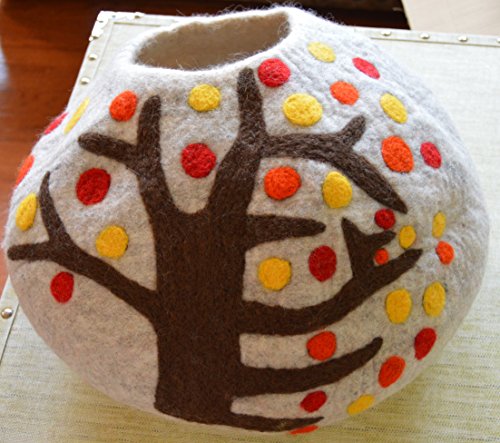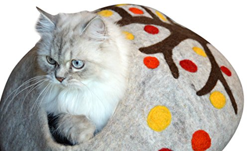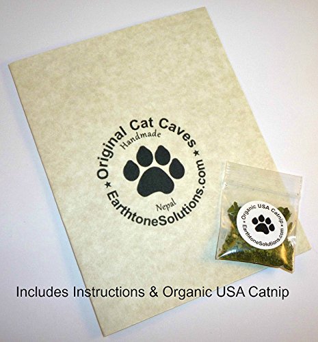 Best Cat Cave Bed, Unique Handmade Natural Felted Merino Wool, Large Covered and Cozy, Also Perfect for Kittens, Includes Bonus Catnip, Original Cat Caves, By Earthtone Solutions