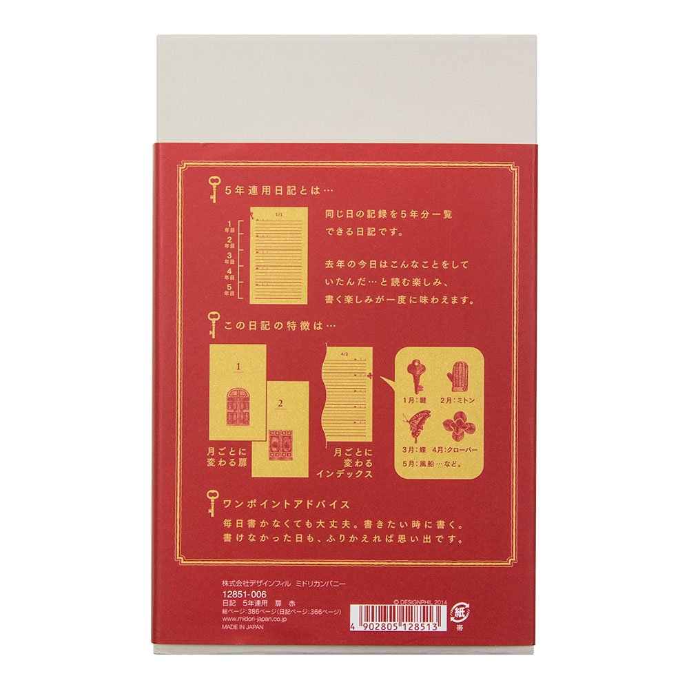 A day-filled format that allows you to write a 5-year journal on one page is a space of 4 rows a day that can be continued without difficulty.