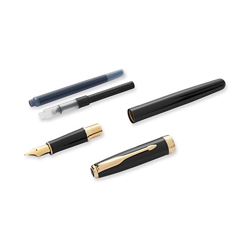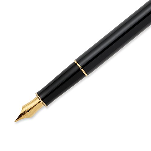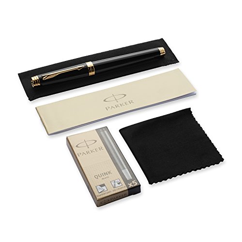 -. Title : Parker Sonnet Fountain Pen, Deep Black Lacquer Finish with Gold Trim, Medium 23k Gold Plated Nib (S0808710)