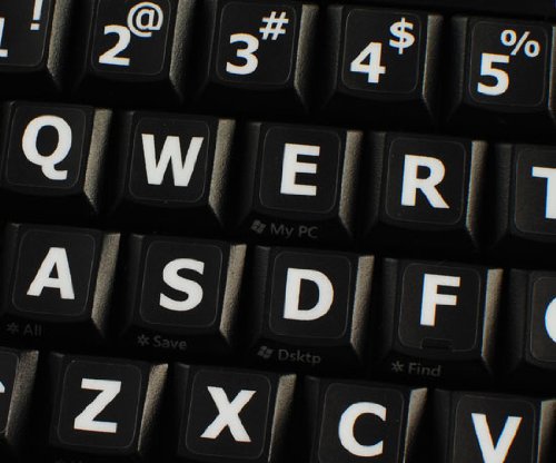 -. Title : ENGLISH US LARGE LETTERING STICKER FOR KEYBOARD (UPPER CASE) BLACK BACKGROUND FOR DESKTOP, LAPTOP AND NOTEBOOK