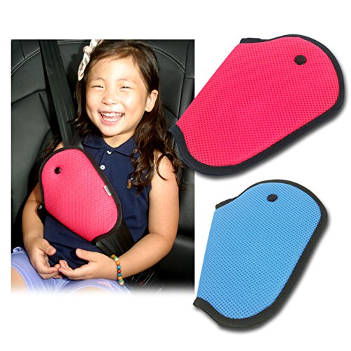 2pcs Car Child Safety Cover Harness Repositions Strap Adjuster Mash Pad Kids Seat Belt Seatbelt Clip Booster Adult Children Seat Belt Clips (blue 1pcs + pink 1pcs)
