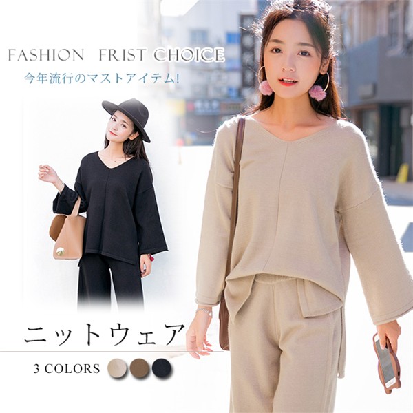 素材:ニットセット内容:セーター+ワイドパンツ『ゆるカワこなれ感♪バルキーニット』秋冬に上品であったかいニットセットアップ。ゆったりとしたシルエットが体型カバー、さらに大人可愛く演出体にフィットする柔らかな生地がボディーラインを美しく見せてくれる◆ 商品写真はできる限り実物の色に近づけるよう加工しておりますが、お客様のお使いのモニター設定、お部屋の照明等により実際の商品と色味が異なる場合がございます。 ◆ 実寸(平置きした状態でメジャーで計測したもの)とヌード寸(タグについているおおよそ●cmの方対象を表すサイズ表記)とは測り方が異なります為、サイズ比較対照となりません。※品名【即納】商品以外で、メーカーから取り寄せを致しますので、通常8-10日間前後お時間を頂いております。※メーカー生産都合、休日等により前後する場合がございますので、予めご了承くださいませ。※当店では複数店舗で在庫を共有しており、システムで在庫の調整を行っておりますが、アクセス集中等により在庫数の更新が間に合わず、実際の在庫数値との誤差が生じる場合がございます。