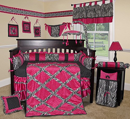 SISI Baby Bedding - Hot Pink Zebra 14 PCS Crib Bedding Including Music Mobile