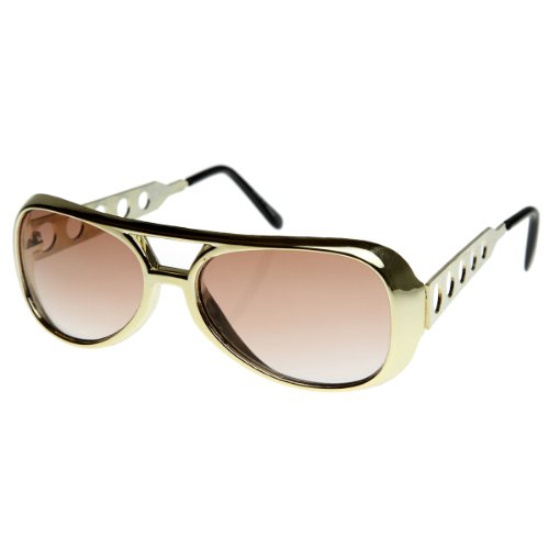 Complete your Elvis costume with these authentic gold Elvis Pressley sunglasses. This is an officially licensed Elvis Pressley costume accessory.