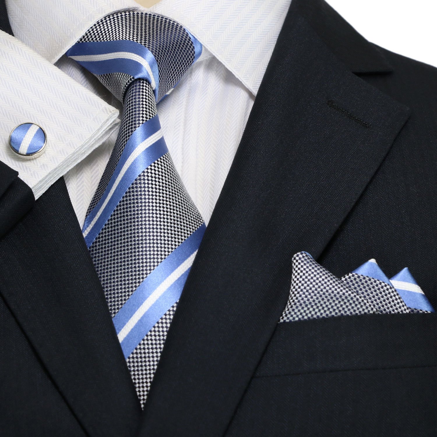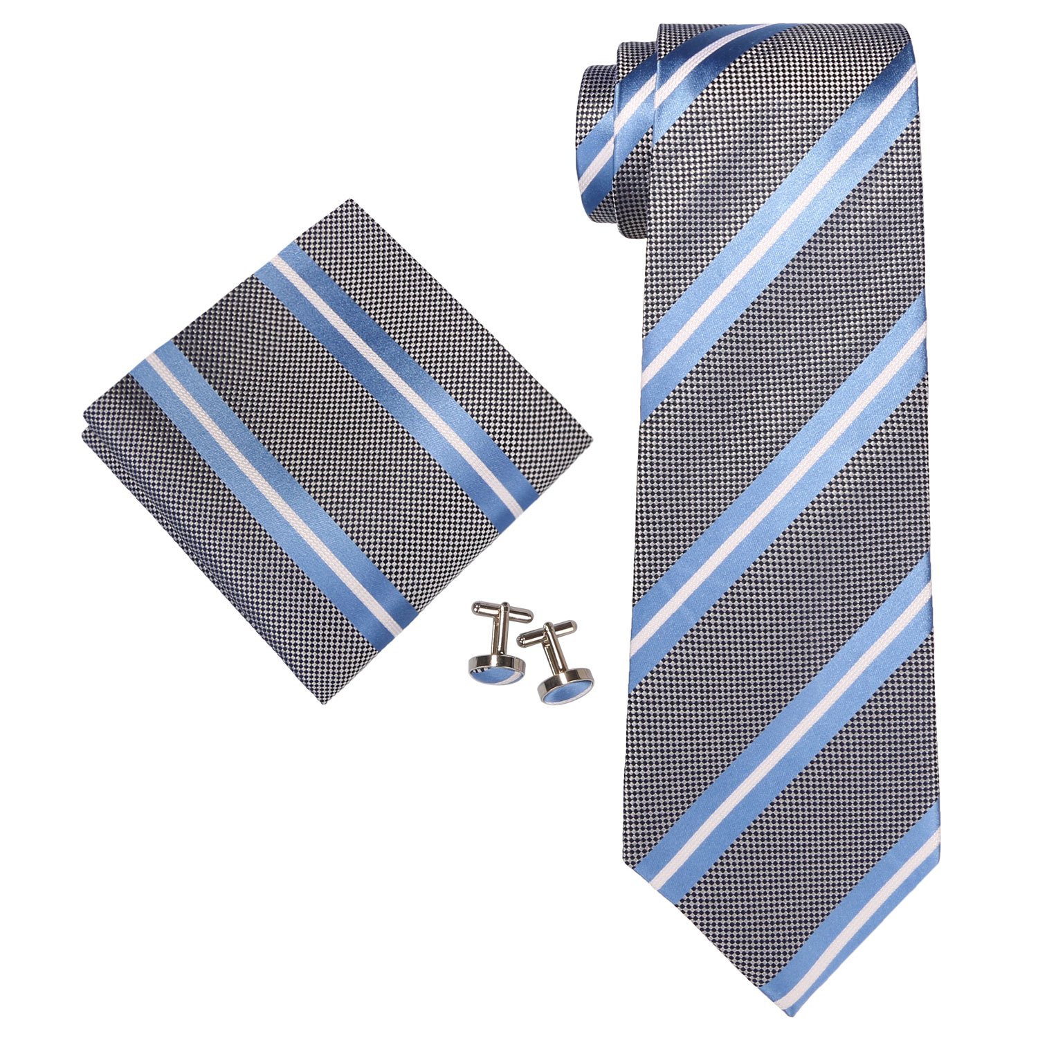 The tie set is a set of cufflinks and handkerchiefs.