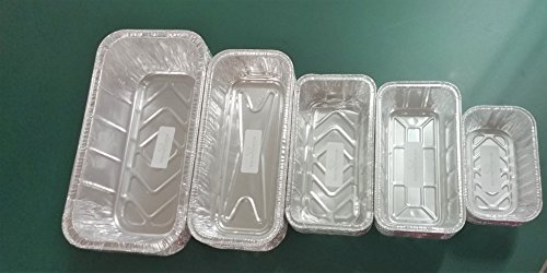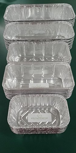 KitchenDance Disposable Aluminum Foil Loaf Pan Variety Pack. 1 lb. - 1-1/2 lb. - 2 lb. - 3 lb. and 5 lb. size. 10 of each size for 50 total.