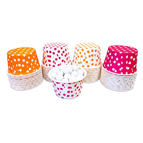 Candy Nut Mini Baking Paper Treat Cups - Hot Pink Orange and White Dot - 2 x 1.5 Inches - 48 Pack