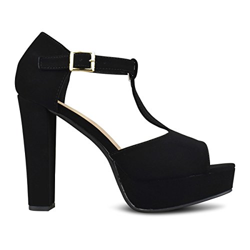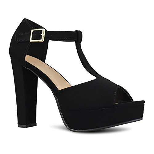 Premier Standard Womens Platform Ankle T-Strap High Heel - Peep Toe Sandal Pump - Sexy Chunky D...