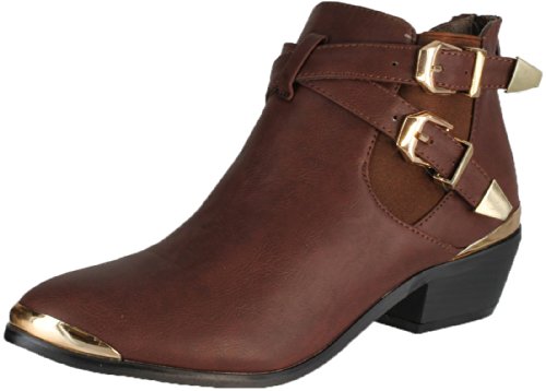 Binding : Apparel Product Description You will know it is the one at your first glance. Show off your trendy style with these unique boots with its stylish Side cutouts, Pointy toe and Buckle and metallic trim are perfectly made for the unbelievable creation. 0
