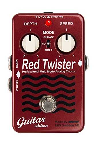 Studio : EBS Publisher : EBS Binding : Electronics Product Description The pedal is built with the best analog processing circuitry available. This gives a smooth, warm and fat sounding chorus/flange effect, useful both for live and studio performances. The Red Twister is built on the legacy of the EBS UniChorus Studio Edition bass effect, but with adjustments of delay times and frequency range to match the guitar perfectly. The pedal output can run in mono or stereo. Under the hood of the Red Twister, there's a mix level control that let you decide how much or little of the effect you'd like to be blended with the original tone. See the manual for details. The Red Twister is one of the three first launched pedals in EBS new Red Label Pedals for guitar, along with the EBS DynaVerb Guitar Edition and MultiComp Guitar Edition. They all comes with the heritage from EBS famed Black Label Pedals for bass, that have been used by world-famous guitarists for years. With the Red Label Pedals, all the details has been adjusted for optimal performance with guitar, with the input from some of the most busy Swedish session guitarists and the staff from the famous TGT11.se pedal specialists store in Stockholm, Sweden. 0
