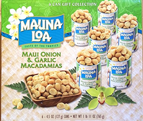 -. Title : Maui Onion & Garlic Premium Roasted Macadamias, Island Classics 6-Tin Gift Pack