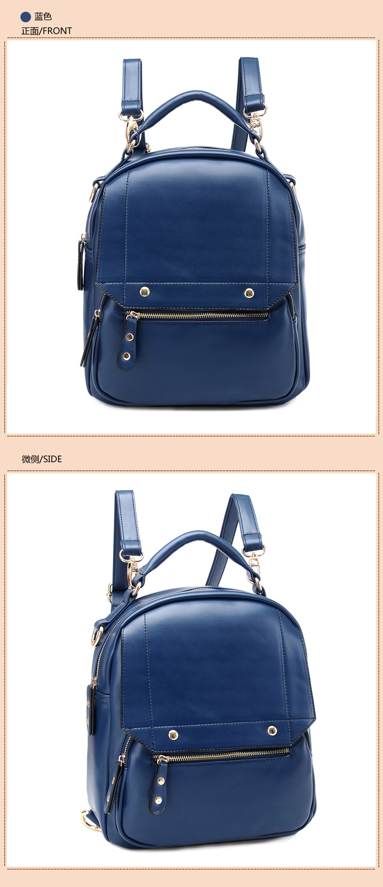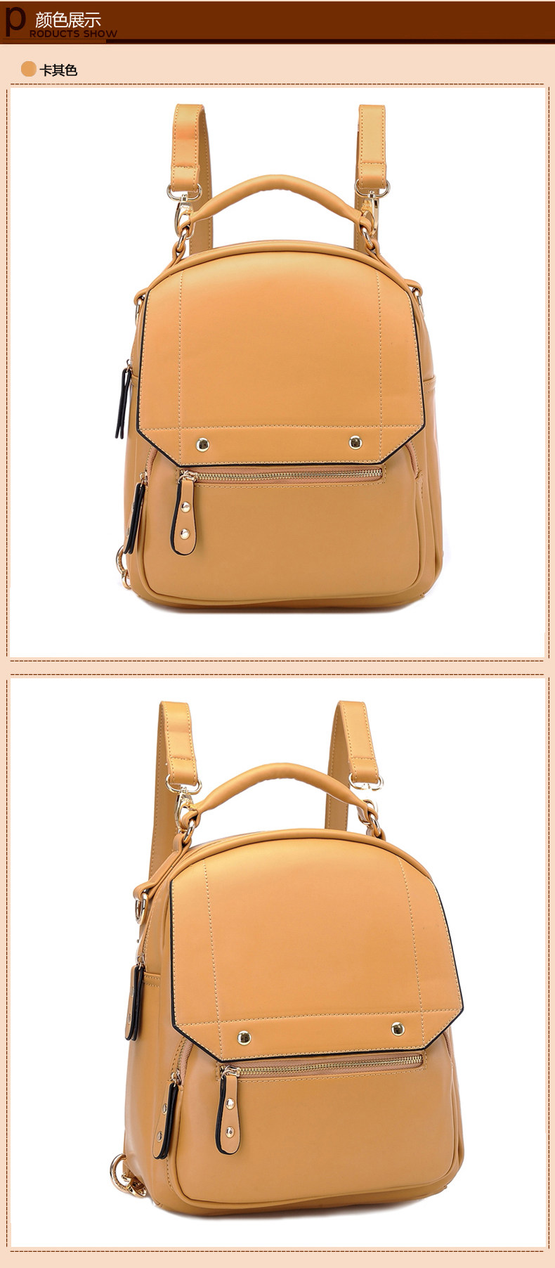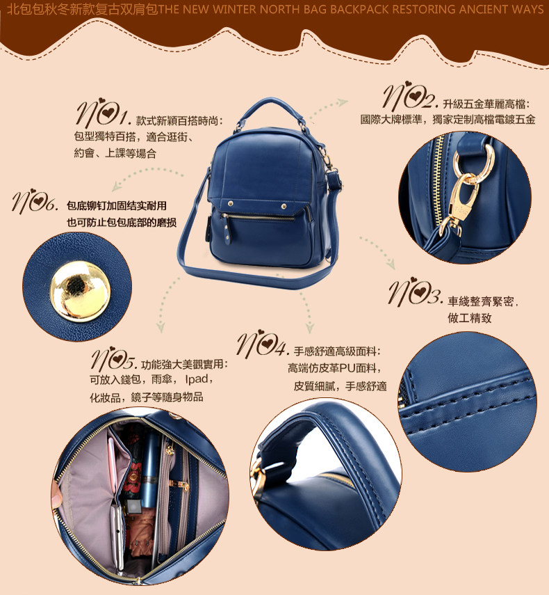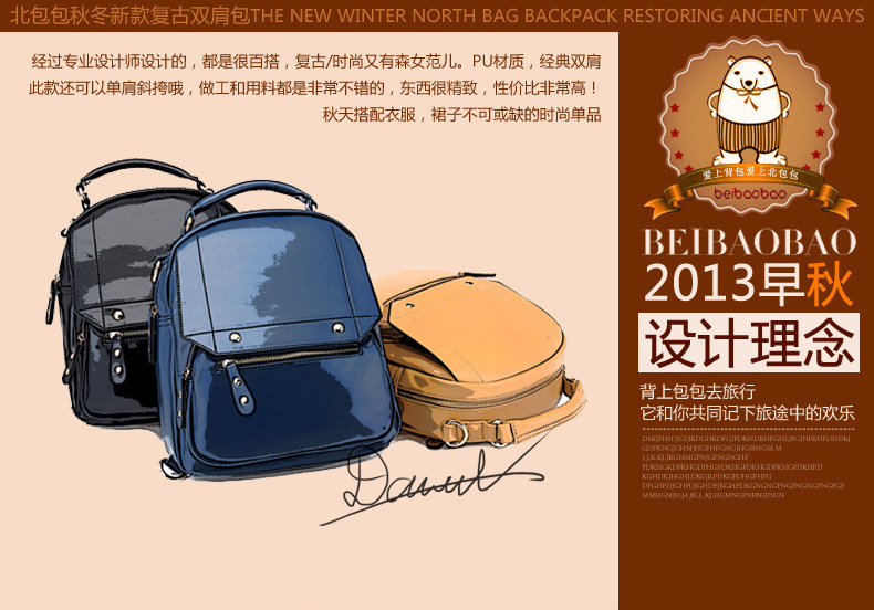 | 包包物语 | 韩版时尚学院风双肩包。内部1个拉链袋,2个置物袋 | |||