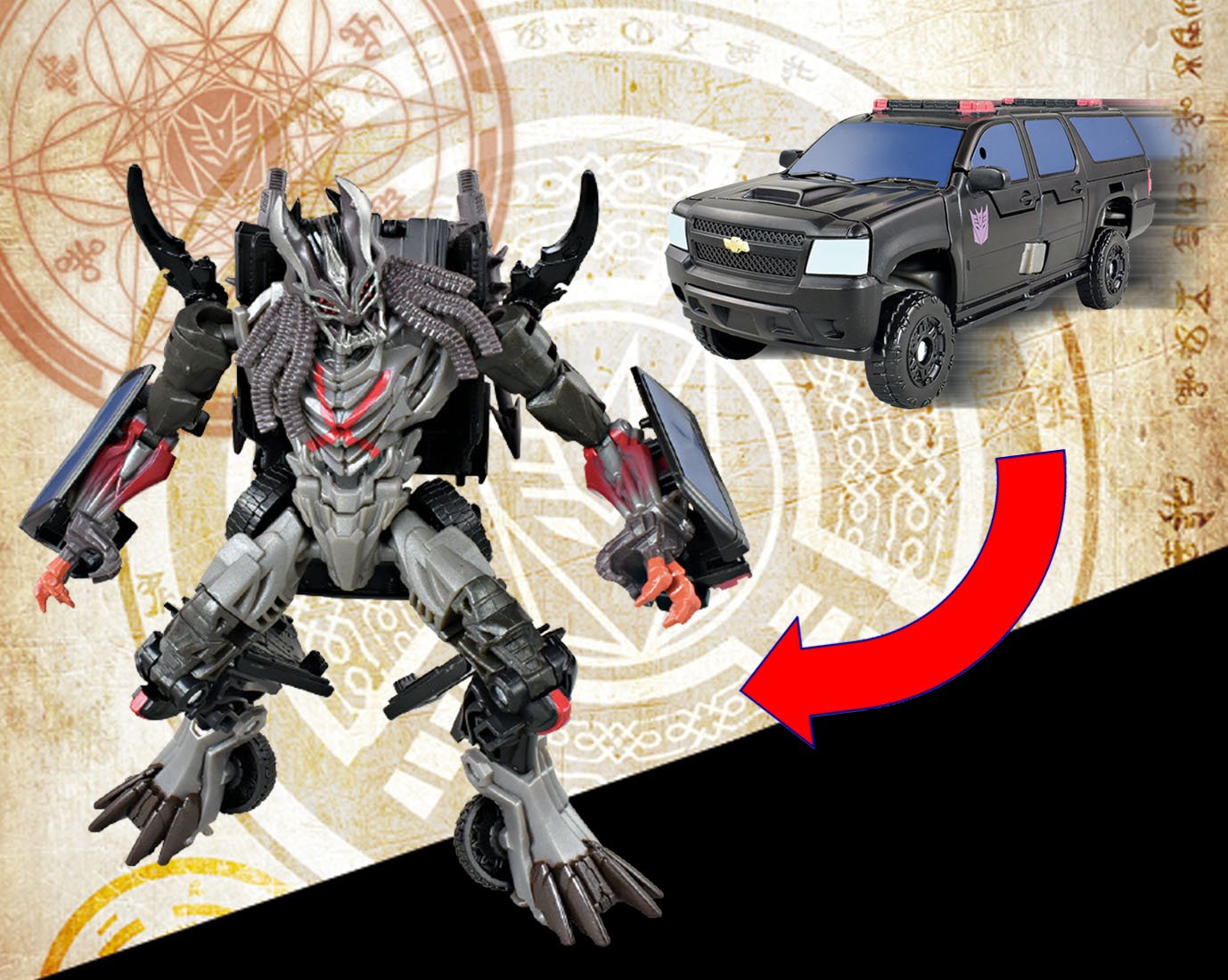 Decepticon 's monitoring team with dreaded hair! Chevrolet Suburban in Vehicle mode.