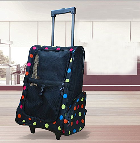 Studio : Livebest Publisher : Livebest Binding : Misc. Product Description Material: Waterproof oxford and PVC mesh Dimensions: 14"L x 9.4"W x 19.3"H Adjustable draw-bar height: 38.9in (from floor to top) This pet carrier is versatile, durable, lightweight, and comfortable not only for your pet but also for you. The design of a pull out handle and bottom casters for easy transportation. Take your pet wherever you go!