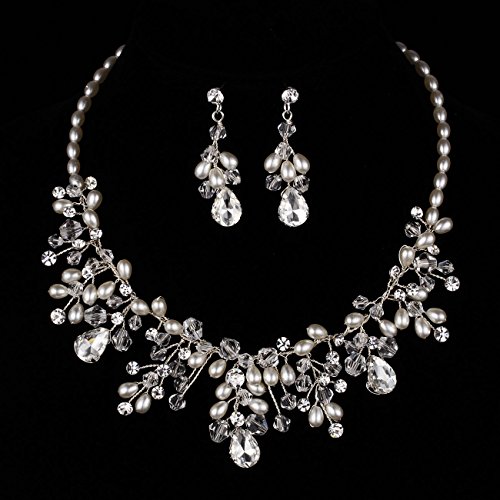 - Feature : Material: Rhinestones, crystal, simulated pearls, copper wire / Item type: Choker necklace and dangle earrings (piercing) / Style A necklace chain length: approx 15.8"+4.5" extended chain. Earring Size: approx 1.7" x 0.78"(l x w). Style B necklace chain length: approx 15.8"+3.9" extended chain. Earring Size: approx 1.5" x 0.59"(l x w) / Purely hand made necklace out of tons of clear crystal and ivory artificial pearls. Beautiful detailed design add elegance on special occasions / Occasion: Wedding party,Wedding Anniversary,Wedding bridesmaid gift,Mothers day,Valentines day, Birthday,Party,Prom,Christmas gift