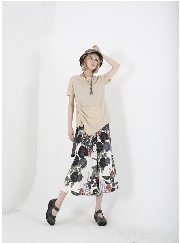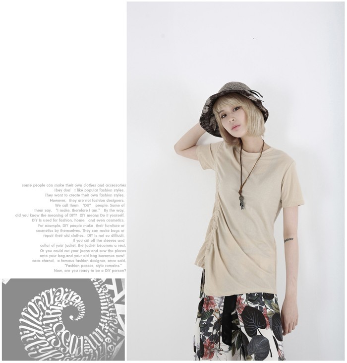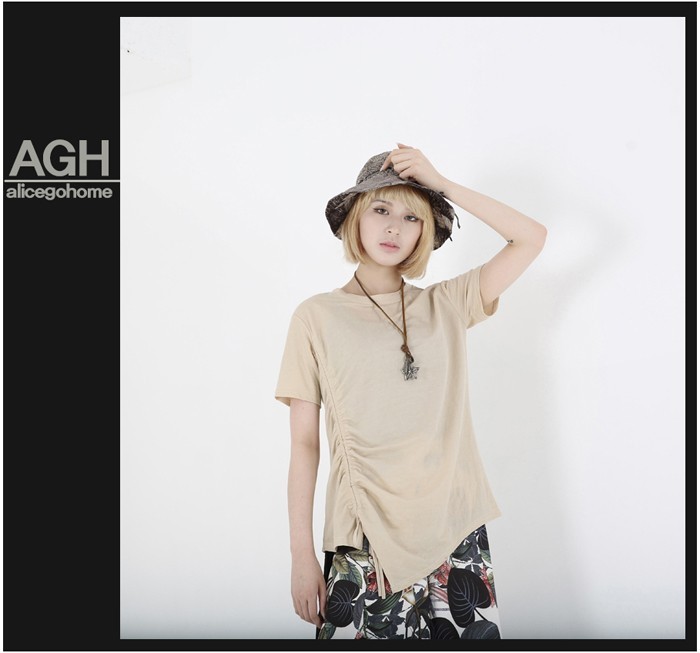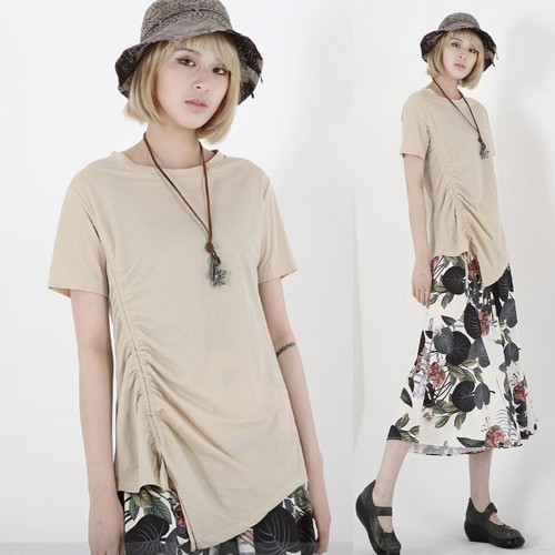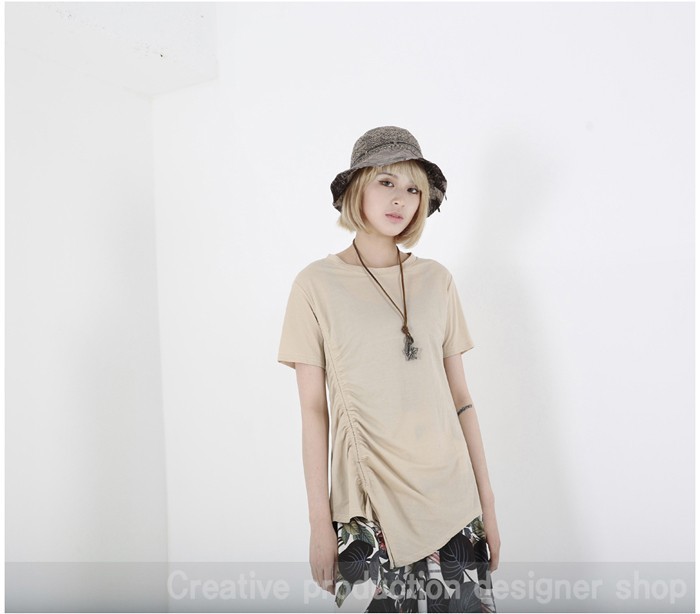 商品名:Tシャツ レディース 無地 半袖 アンバランス 夏 2018 モード系 個性的 40代 ファッション