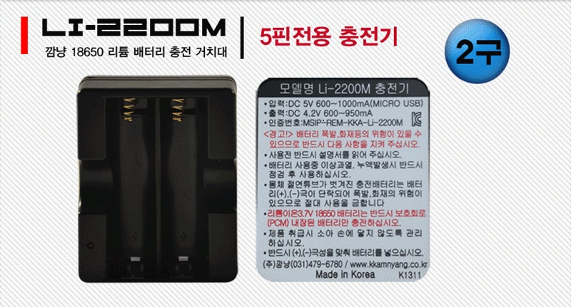 - 품명 및 모델명18650 충전지 충전거치대 2구