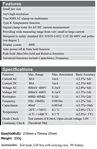 Ruby Electronics DT-338 80A / 1mA Clamp-on AC/DC Current Voltage Capacitance Frequency Resistance Temperature Meter True RMS NEW!!