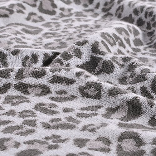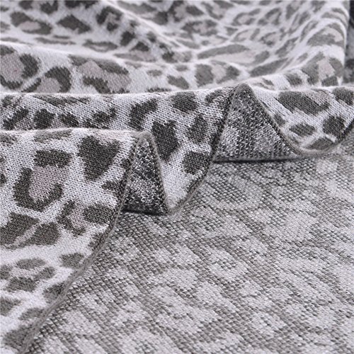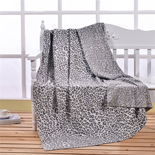 HaoDuoYi Leopard Jacquard 100% Cotton Knitted Bed Throw Blanket 51”X71” Soft Lightweight(Gray)