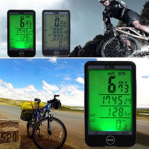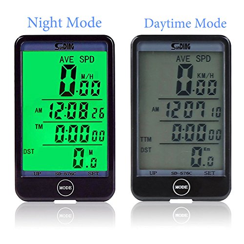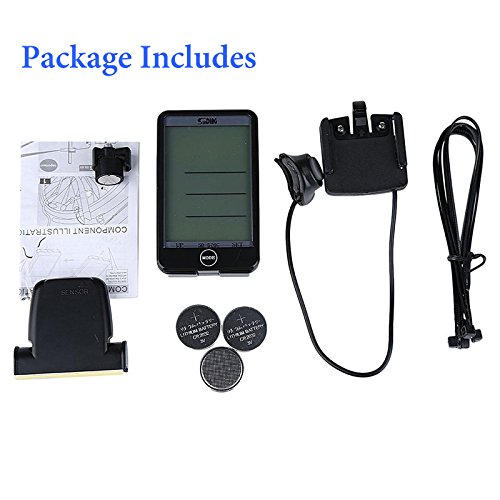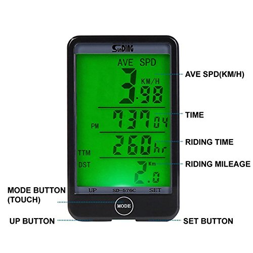-. Feature : Larger LCD Display: Intelligent MODE Button- Auto Start / Awake - Auto Backlight - Auto Sleep. / Multi-Function but simple install and use: Wired remote control- Anti-interference- Temperature measurement, cutting-edge design: Accurate, effective. / MODE Button: Easily free switch three models: Display Mode- Trip Up/Down Mode- Inquiry Mode; Wired Remote Control: One button control, convenient using bike computer when riding. / Smart Light-controlled: Can sense automatically the light intensity around the bike computer. It will be on or off when the light is insufficient or sufficient; But the backlight on/off can be controlled by MODE button. / Double Battery Design: The bike computer can work normally only need one battery, but double batteries design can ensure the bike computer work longer time, especially the bike computer with large LCD screen and backlight.